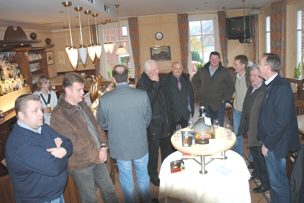 In Erle erwartete sie der Präsident der Deutschen Schnapsbrenner Johannes Böckenhoff. In einer launigen Ansprache erklärte er Ihnen die Vorzüge deutscher aber auch internationaler Brantweinherstellung und die Unterschiede der verschiedensten Sorten.