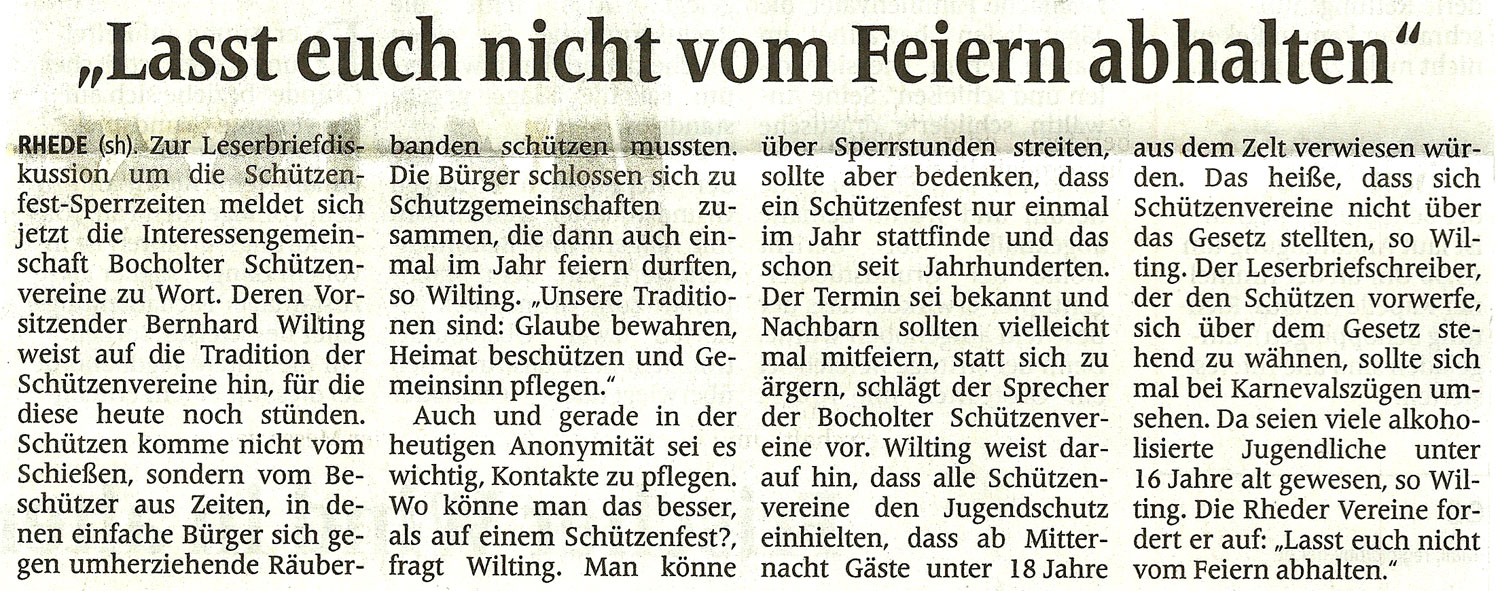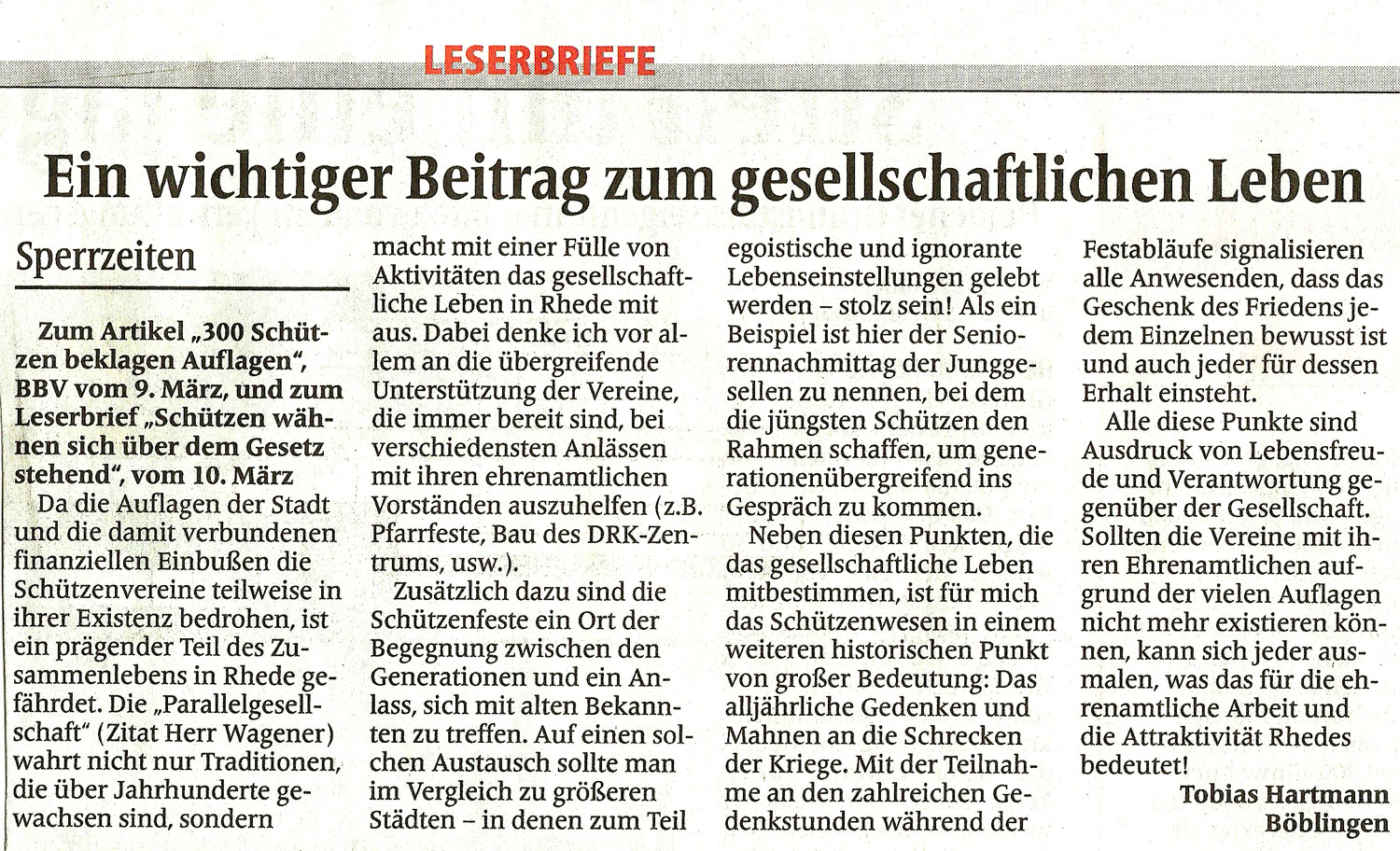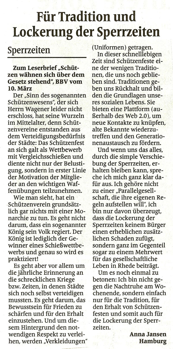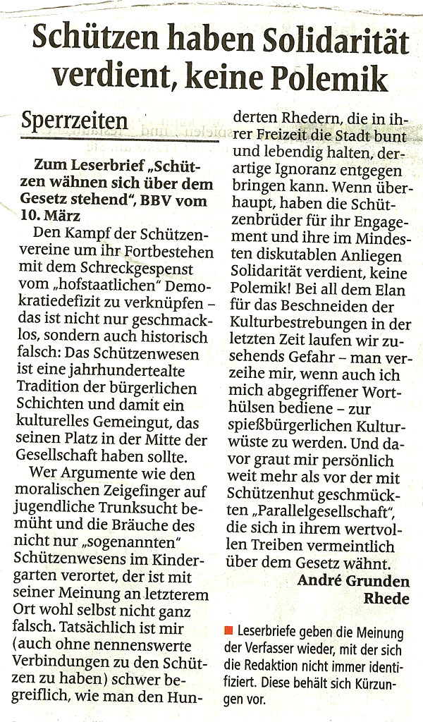 Leserbriefe zum Artikel "300 Schützen beklagen auflagen"