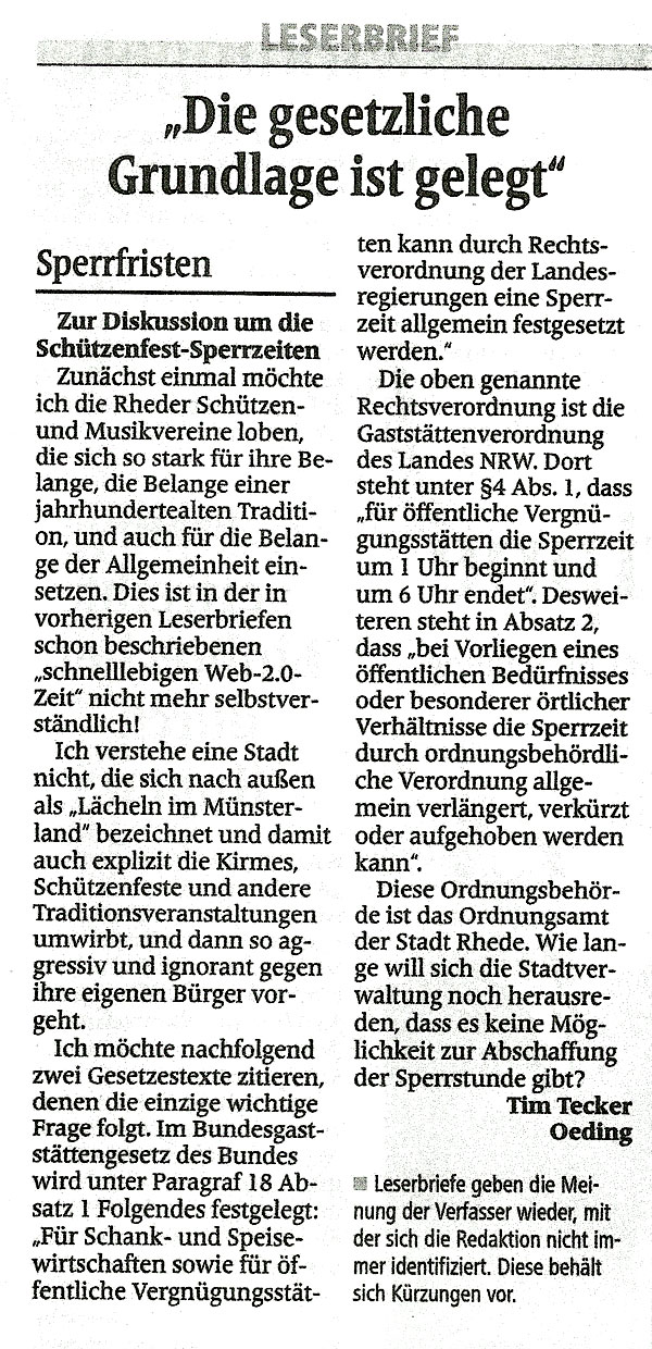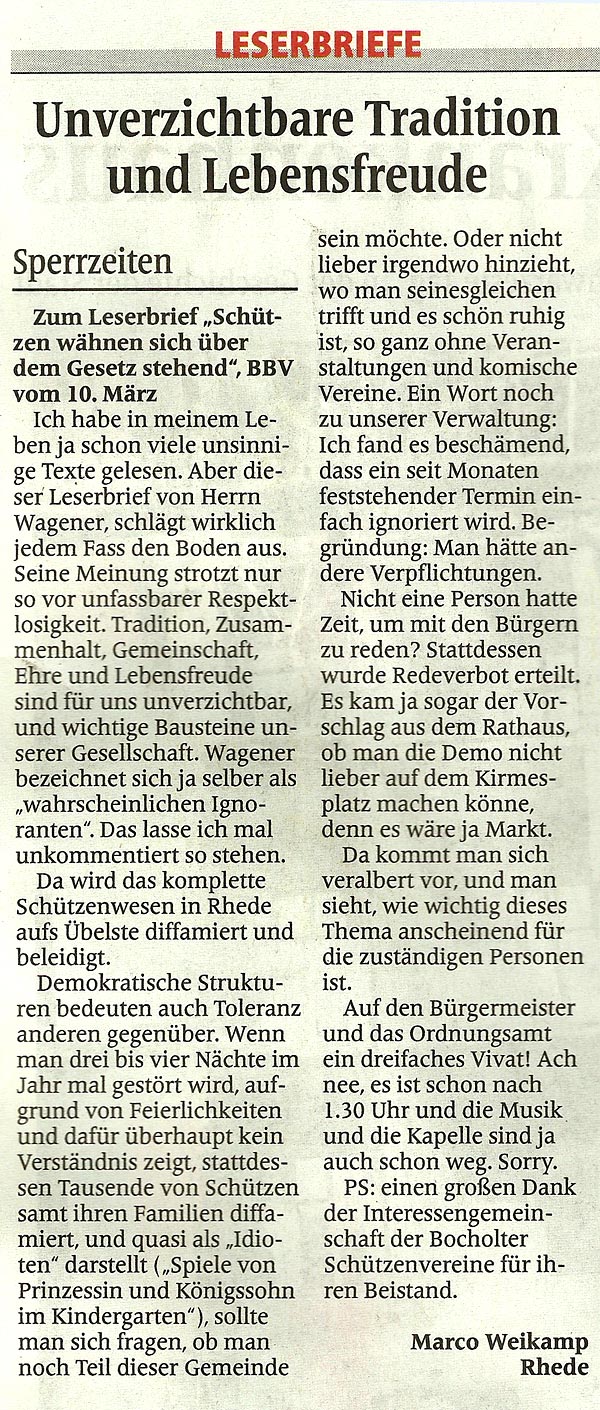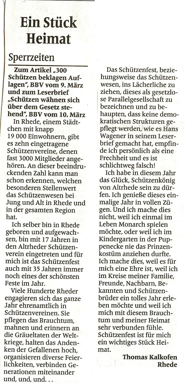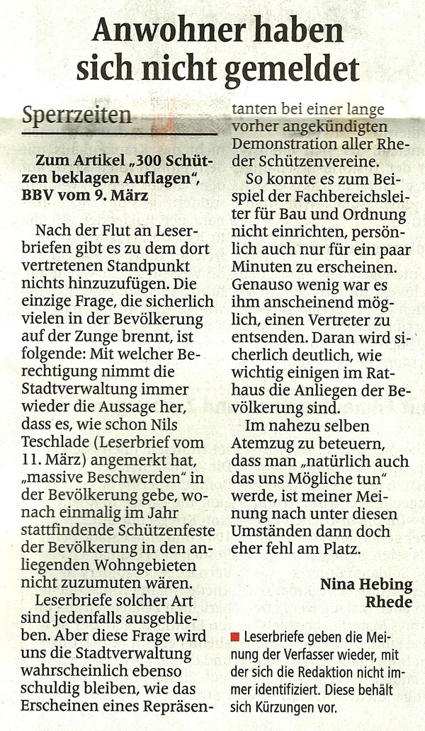 Leserbriefe zum Artikel "300 Schützen beklagen auflagen"